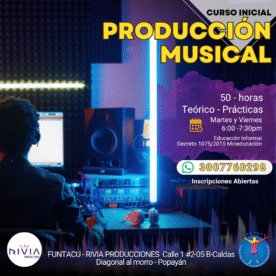 El curso inicial de Producción Musical en Popayán, tiene una duración de 50 horas (4 meses) son 3 horas semanales.
